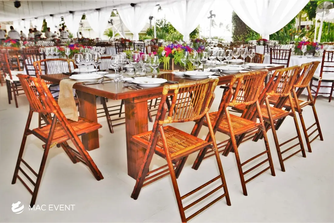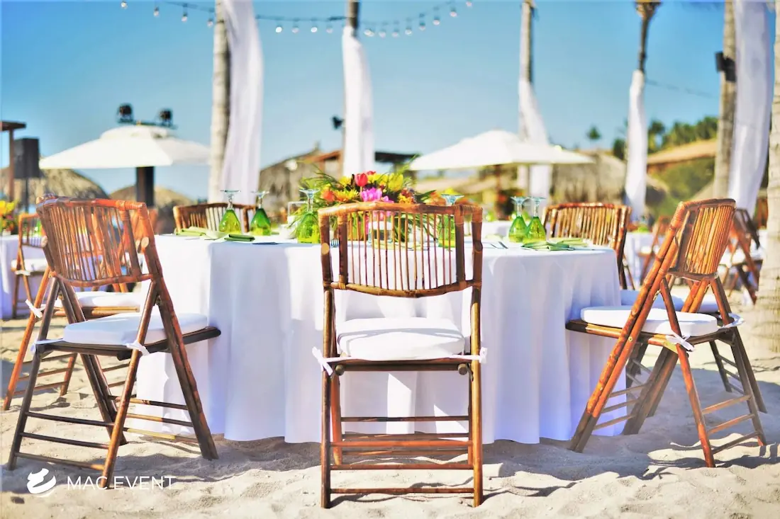 The bamboo chair is a perfect choice for tropical weddings, beach parties, and outdoor events in Puerto Morelos. Its natural texture and warm tone create a relaxed yet elegant atmosphere that blends beautifully with the local surroundings. Lightweight and eco-friendly, this bamboo chair rental is ideal for open-air ceremonies and casual gatherings where comfort and style matter equally. Renting bamboo chairs adds a touch of authenticity and charm to your event while ensuring a cohesive and inviting setup. For a tropical, sustainable, and refined look, the bamboo chair brings nature’s beauty into every celebration in Puerto Morelos.